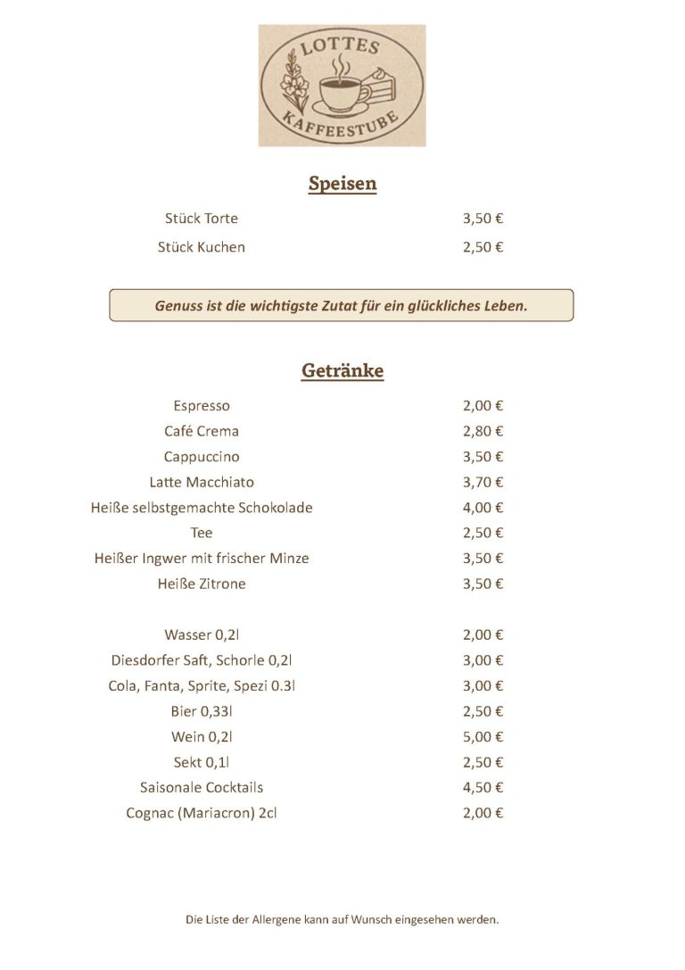 Neben den hier angezeigten Köstlichkeiten wird es immer wieder ein wechselndes Angebot an Torten und Kuchen geben.